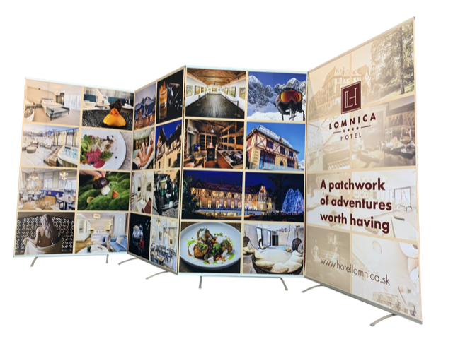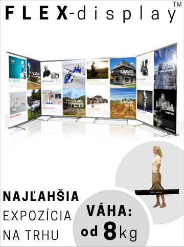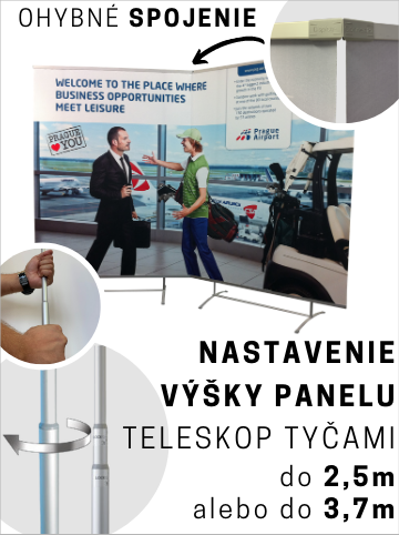 Kreatívny, veľmi spoľahlivý a elegantný prezentačný systém neprekonateľný svojou minimálnou váhou (napr. jedna stena 150x200 cm - 4,5 kg). Variabilita výšky panelu je do 250 cm vďaka teleskopickým tyčiam. ... Spojenie dvoch a viac FLEX-display stien umožňuje neobmedzenú variabilitu priestorového riešenia. Jednotlivé FLEX steny stačí vzájomne spojiť 2 ohybnými spojkami do roviny alebo do požadovaného uhla. Medzi spojenými FLEX stenami je minimálna medzera (2-3 mm), ktorá nijako nevadí celkovému dojmu. Textilný panel je krásne a dostatočne napnutý vďaka zadným klipom s aretáciou, bez negatívneho vlnového efektu. Vzájomne je možné prepojiť jak užšie, tak širšie FLEX steny pri dodržaní zvolenej výšky.
