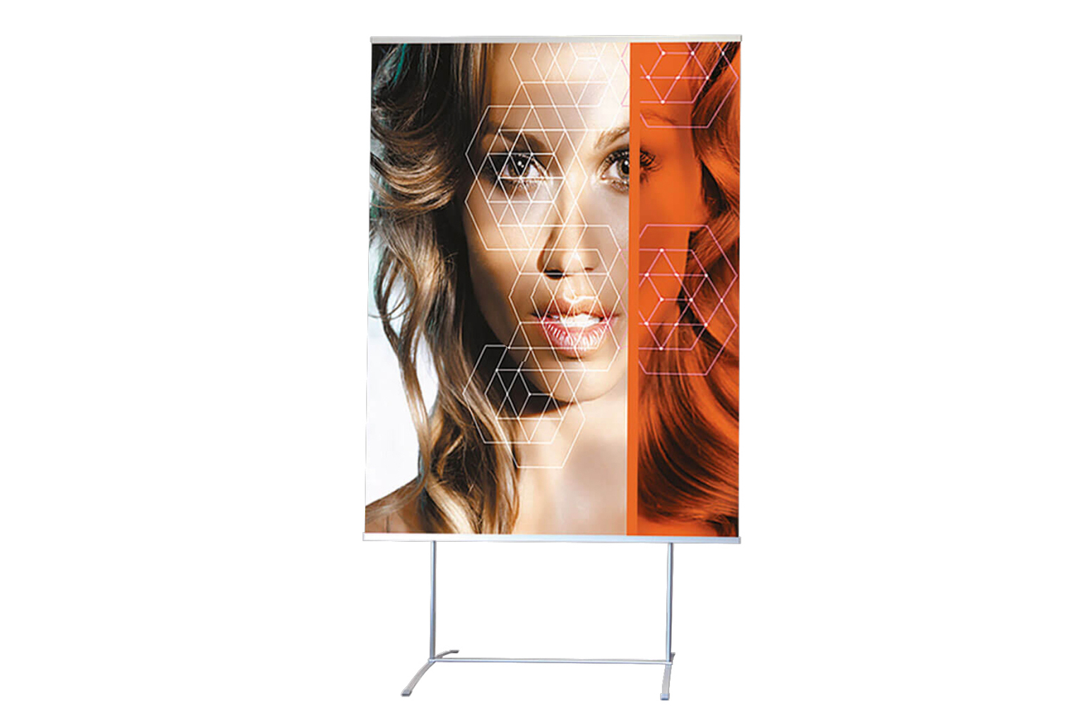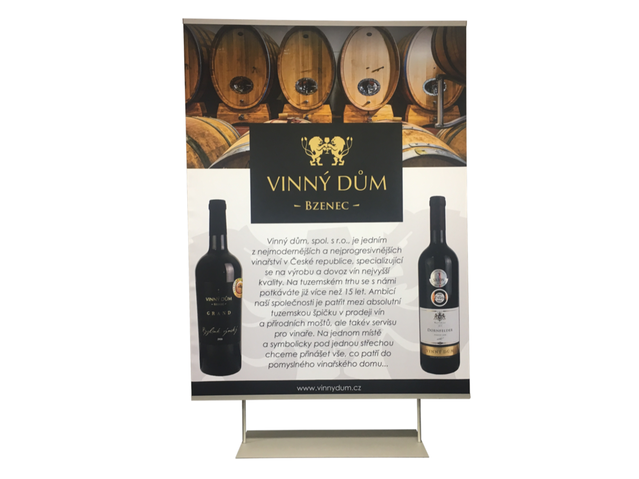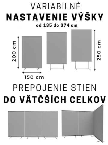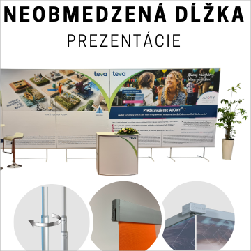 Kreatívny, veľmi spoľahlivý a elegantný prezentačný systém. Variabilita výšky panelu je do 250 cm (prípadne do 370 cm) vďaka teleskopickým tyčiam.