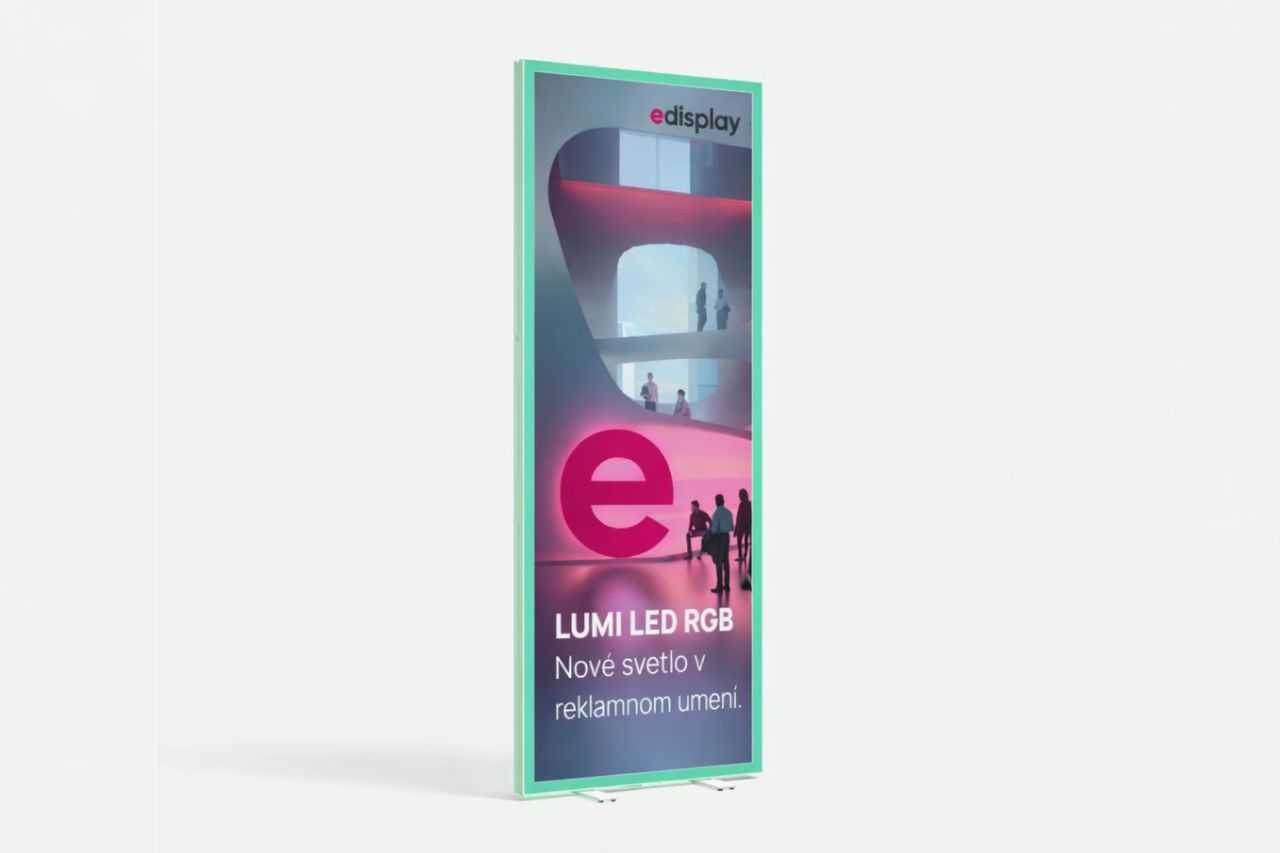 Plne podsvietené LED lightboxy a LED stolíky určené pre prezentácie, výstavy, interiéry a showroomy. ... Pre interiéry a showroomy ponúkame LED lightboxy v rôznych hrúbkach a rozmeroch jednostranne alebo obojstranne svietiacich, vrátane fixačných prvkov pre zavesenie na stenu alebo zavesenie zo stropu. Pre prezentácie ponúkame typizované jednoducho rozložiteľné lightbox steny značky LUMI balené v pojazdnej taške v daných rozmeroch. Pre výstavy ponúkame modulárny systém LUMINOR v rozmeroch podľa Vášho výberu. Steny systému LUMINOR možno vzájomne prepojiť do väčších celkov a rôznych uhlov. LED steny LUMI a výstavné stánky LUMINOR sú obojstranne svietiace s vymeniteľnými textilnými panelmi.