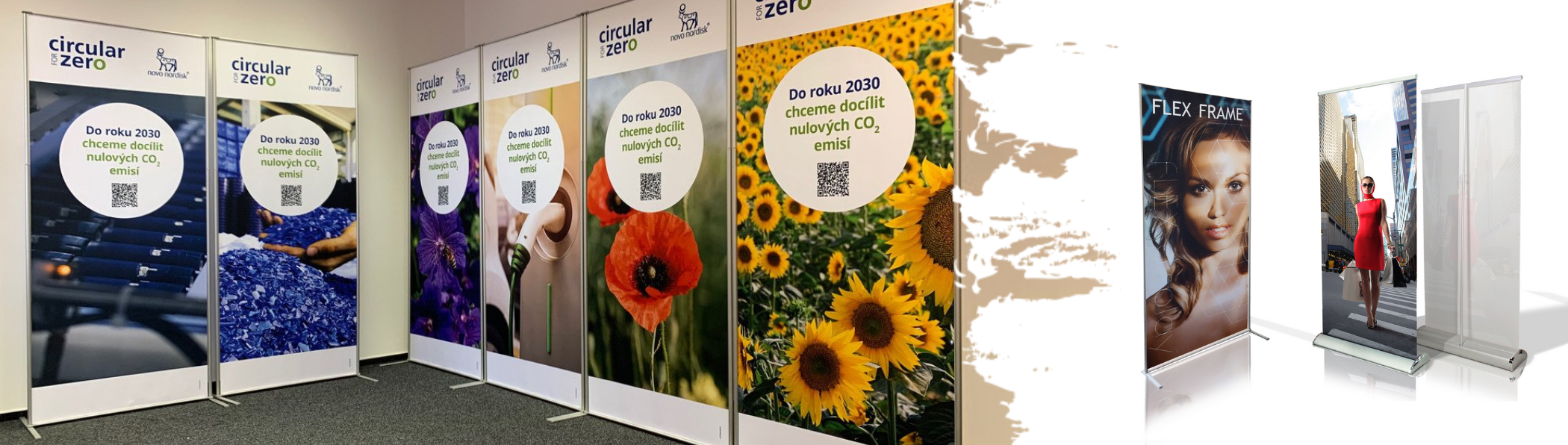 Pokiaľ hľadáte ekonomický prezentačný systém do 120 cm šírky, vyberte si klasický rollup (BUDGET alebo LUXURY) alebo ľahkú elegantnú variantu Flex FRAME s textilným panelom.