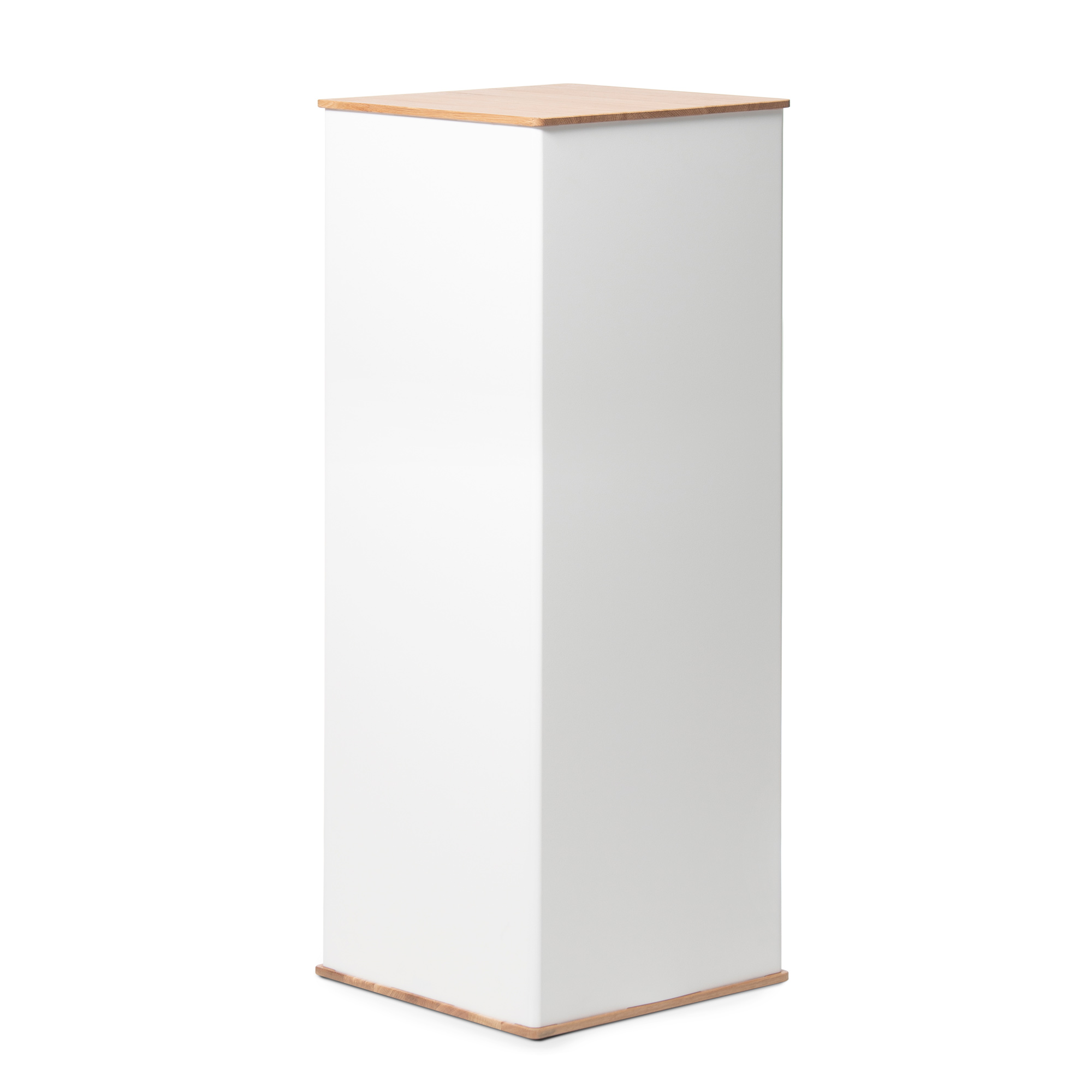 Podstavec je k dispozícii v dvoch veľkostiach: 30 × 30 a 40 × 40 cm. A troch rôznych výškach: 60, 80 a 100 cm. Spodná a vrchná doska je vyrobená z masívneho dubu s matným lakovaným povrchom.