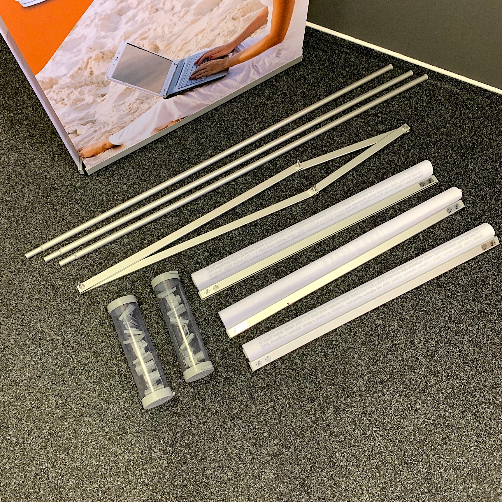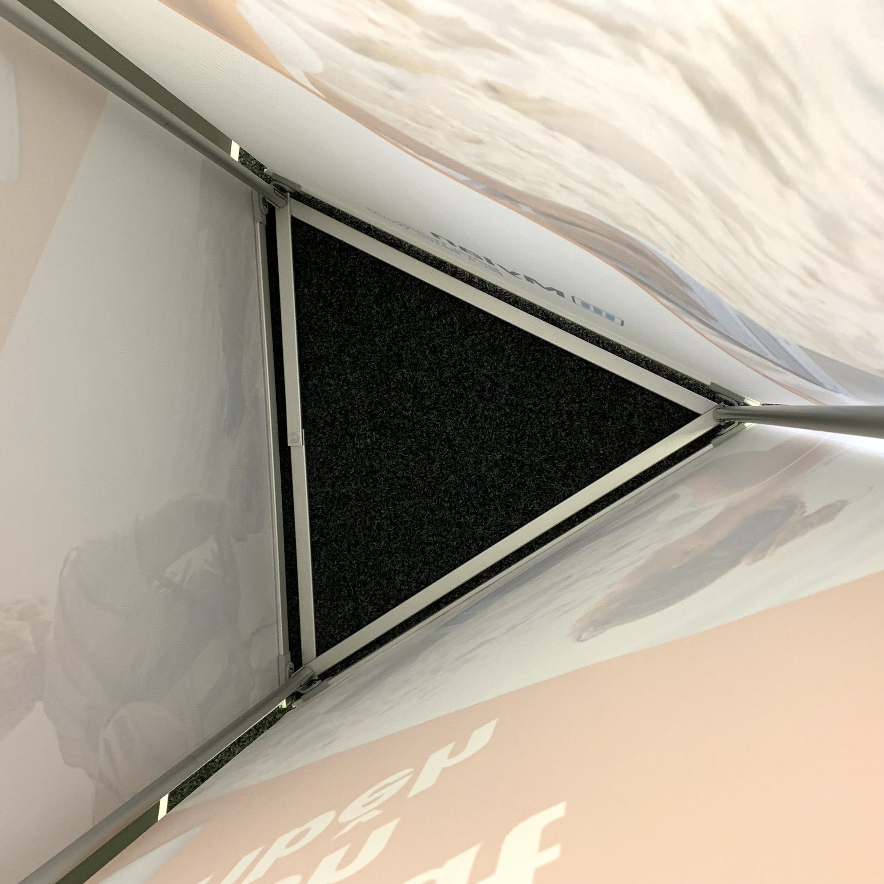 Trojstranný display sa sklada z 1 podstavca, 3 teleskopických tyčí s úchytkami a 3 textilných panelov. Najľahčí prezentačný stĺp na trhu.