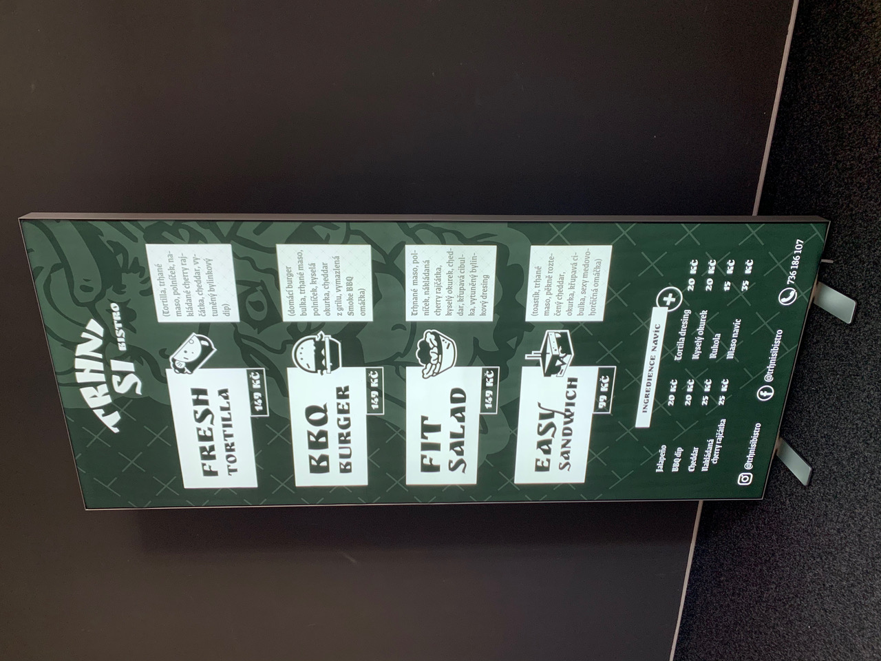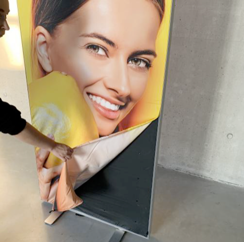 Jednostranne podsvietený lightbox tvorí rozkladací hliníkový rám s 2 stabilizačnými nohami. Rám je ľahko rozložený v priebehu 3 minút bez použitia náradia. Predný textilný panel so sublimačnou tlačou je dokonale presvetlený vďaka LED diodám, ktoré sú pripevnené na zadnom textilnom nepriesvitnom panele. Zadná strana lightboxu (čierna) môže byť prekrytá druhým nepriesvitným textilným panelom s vlastnou grafikou. Tento panel nie je súčasťou, je nutné ho dokúpiť. Všetko je zbalené v jednej taške.