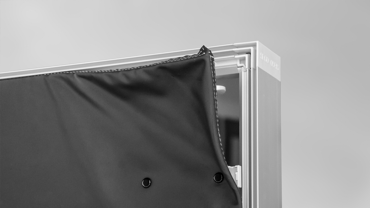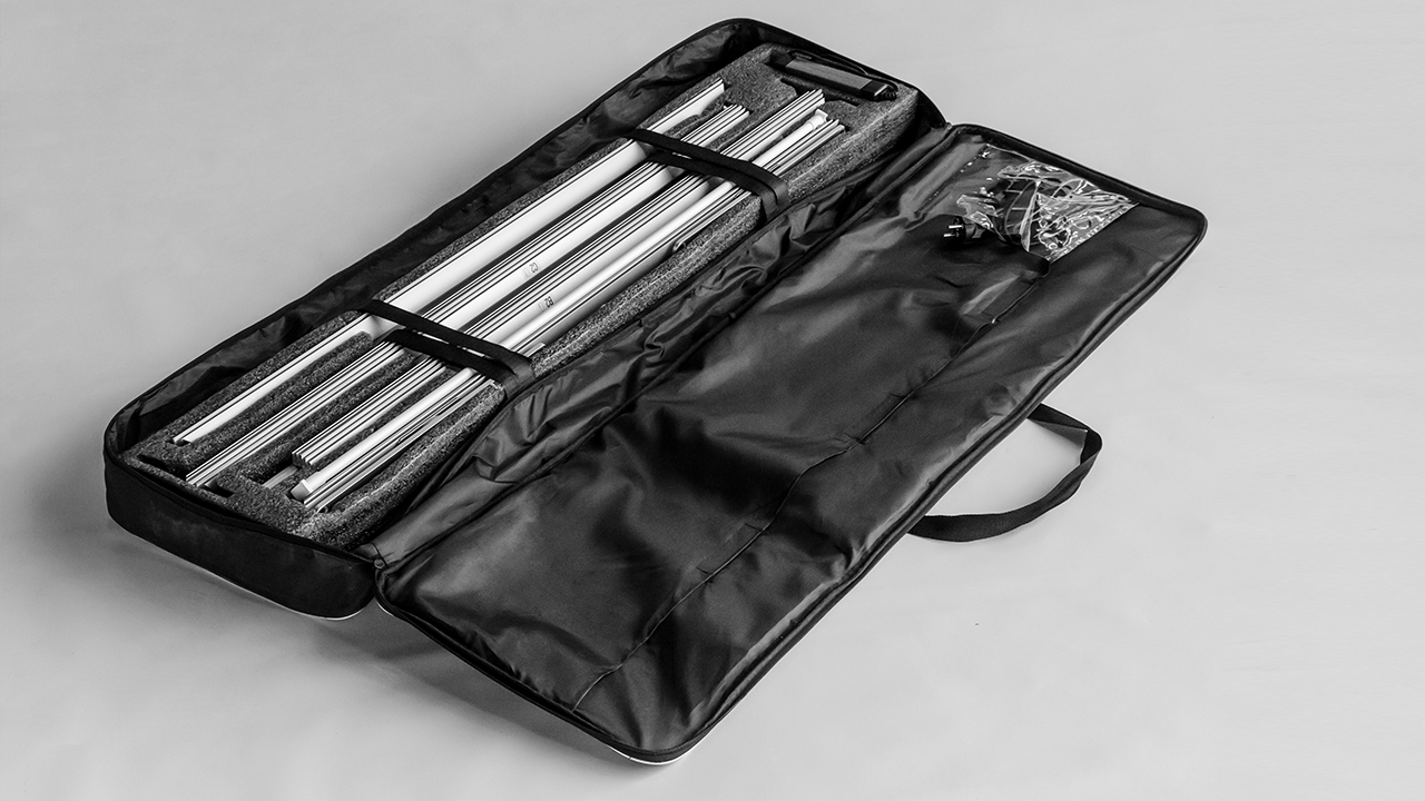 Jednostranne podsvietený lightbox tvorí rozkladací hliníkový rám s 2 stabilizačnými nohami. Rám je ľahko rozložený v priebehu 3 minút bez použitia náradia. Predný textilný panel so sublimačnou tlačou je dokonale presvetlený vďaka LED diodám, ktoré sú pripevnené na zadnom textilnom nepriesvitnom panele. Zadná strana lightboxu (čierna) môže byť prekrytá druhým nepriesvitným textilnm panelom s vlastnou grafikou. Tento panel nie je súčasťou, je nutné ho dokúpiť. Všetko je zbalené v jednej taške.
