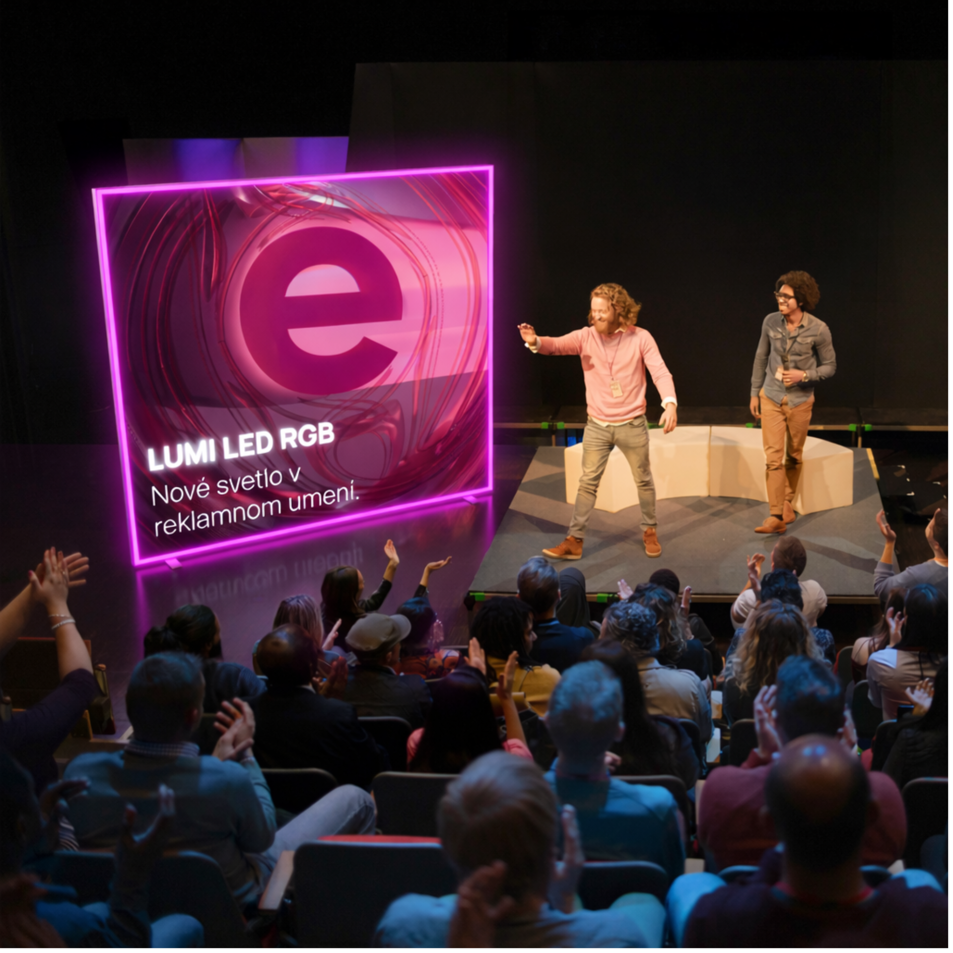 LUMI LED RGB nahrádza statické roll-upy a klasické svetelné steny dynamickým systémom, ktorý pracuje s emóciou, pohybom a farbou.