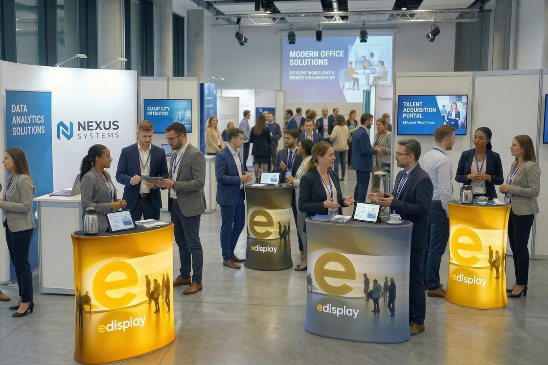 Stačí zdvihnúť hornú dosku a konštrukcia sa sama rozvinie do stabilnej podoby. To z neho robí ideálne riešenie pre veľtrhy, promo akcie aj firemné eventy, kde je potrebná rýchla inštalácia a profesionálny vzhľad.