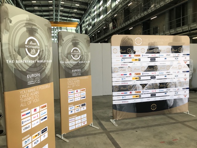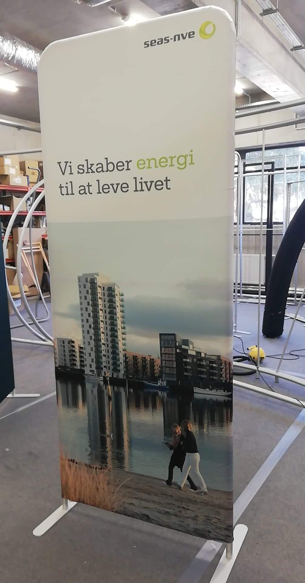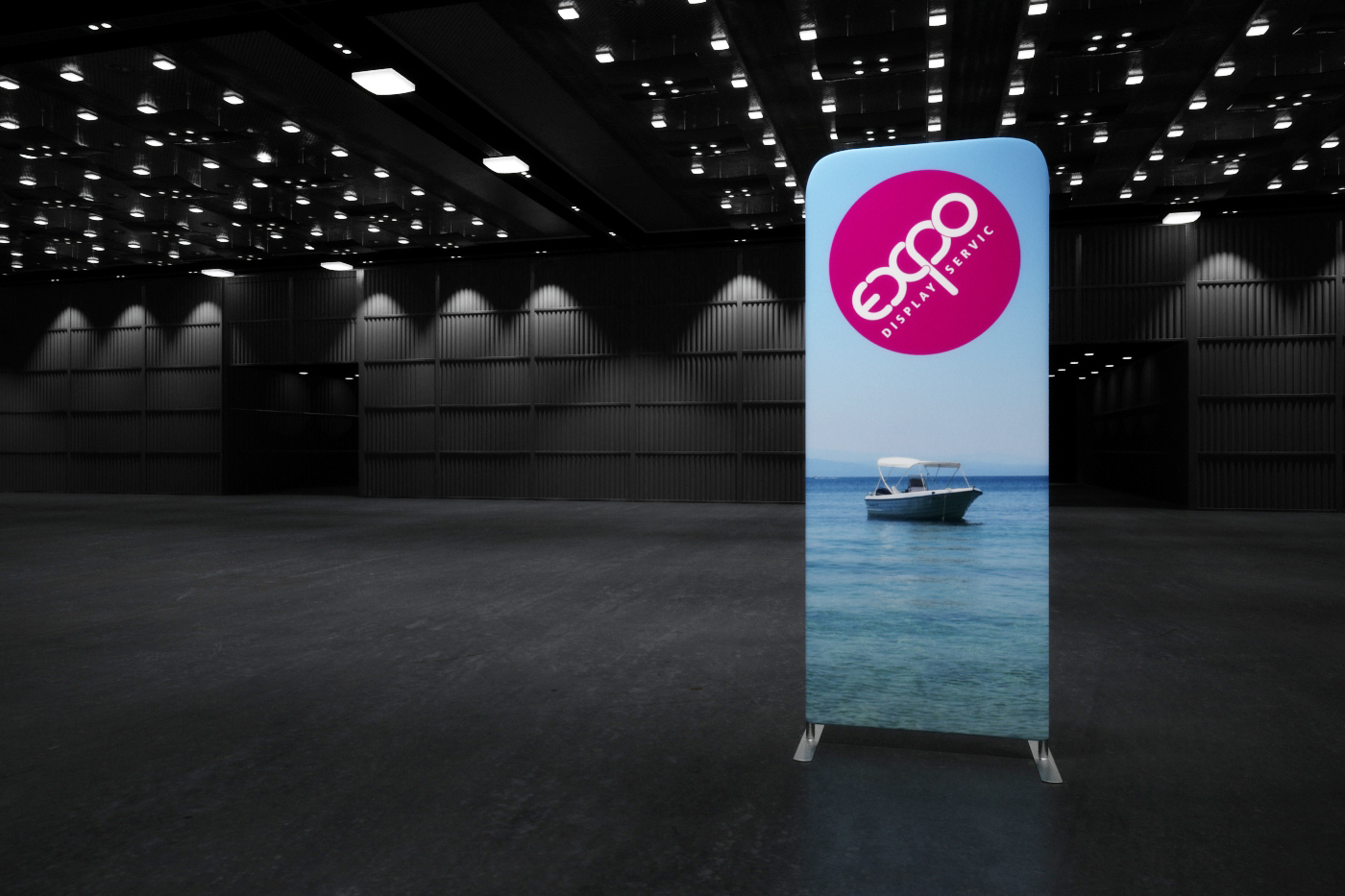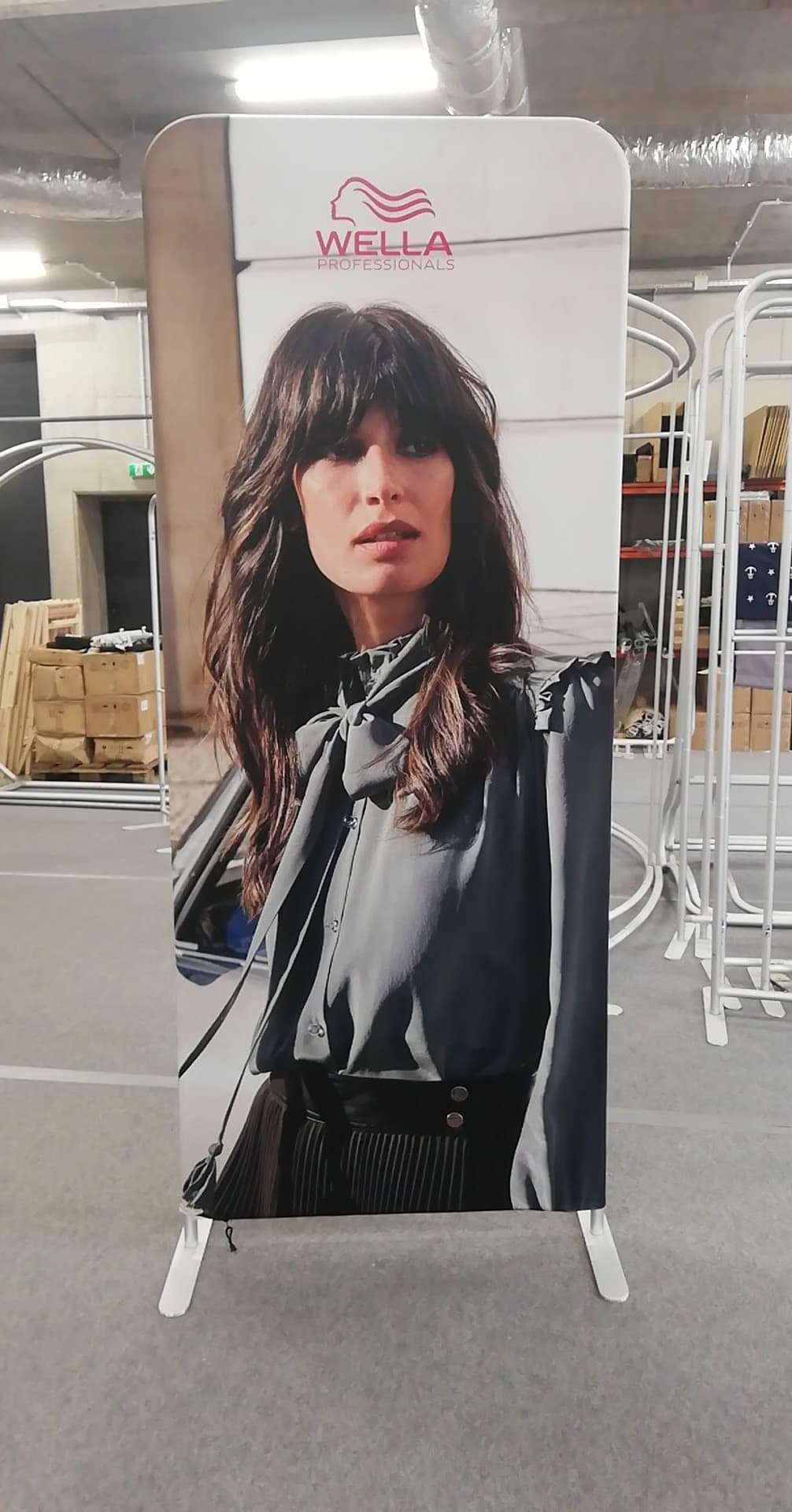 Prezentačnú stenu tvorí strečový panel navlečený na trubkovú hliníkovú konštrukciu pomocou zipsu.