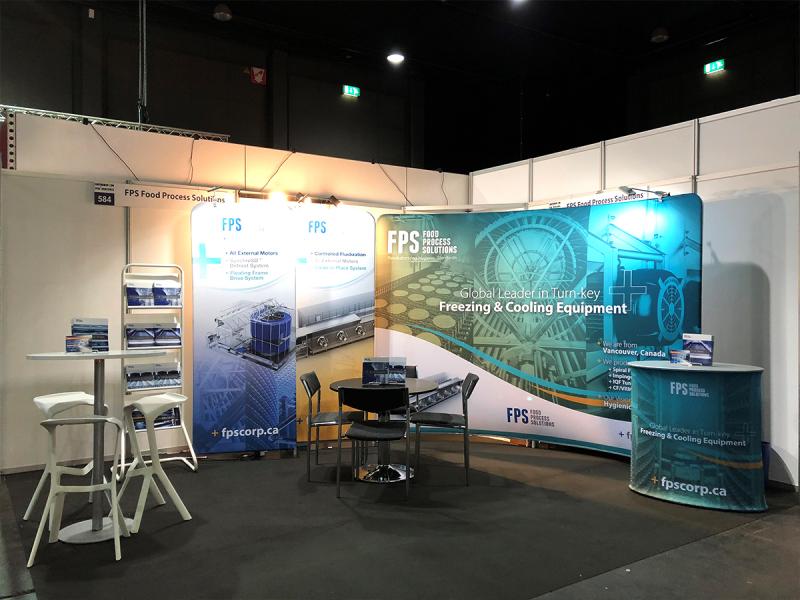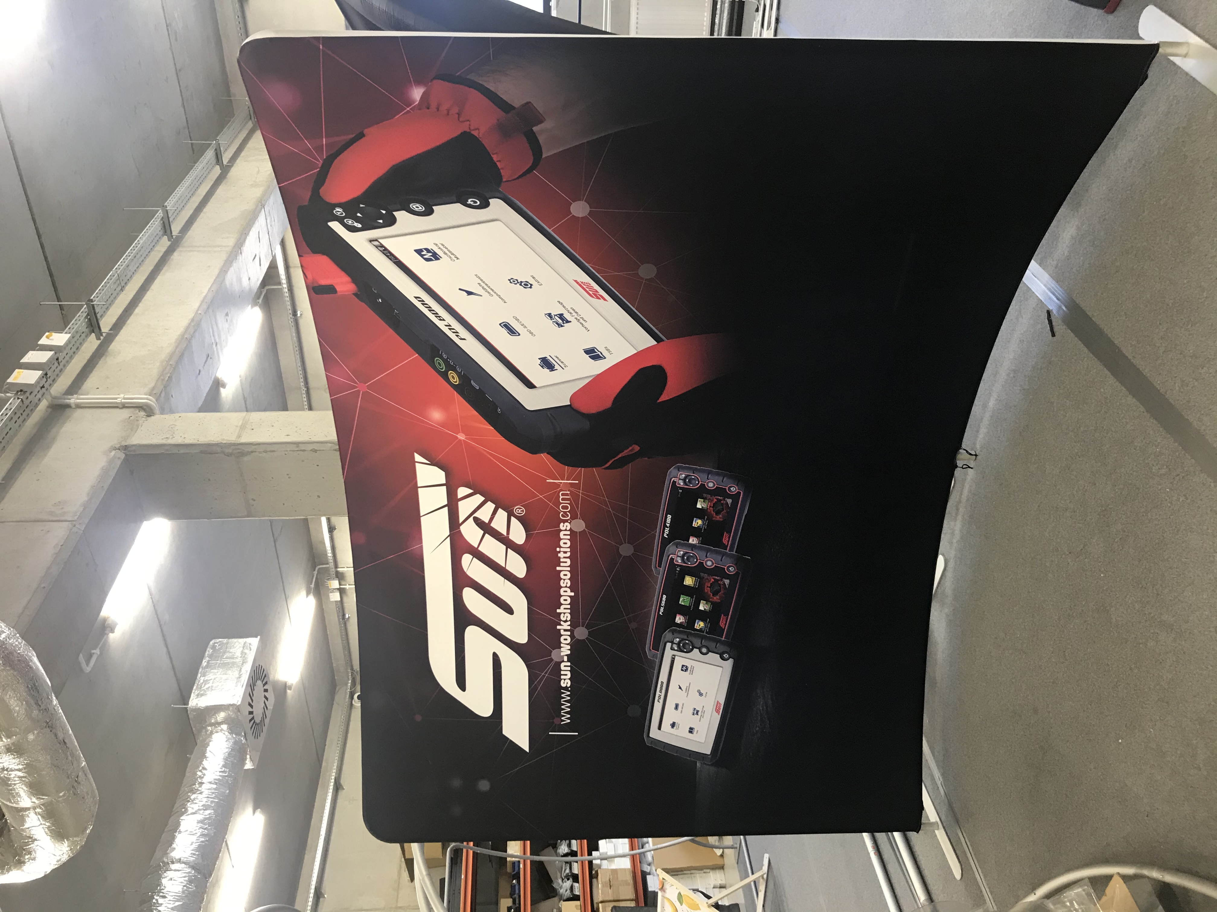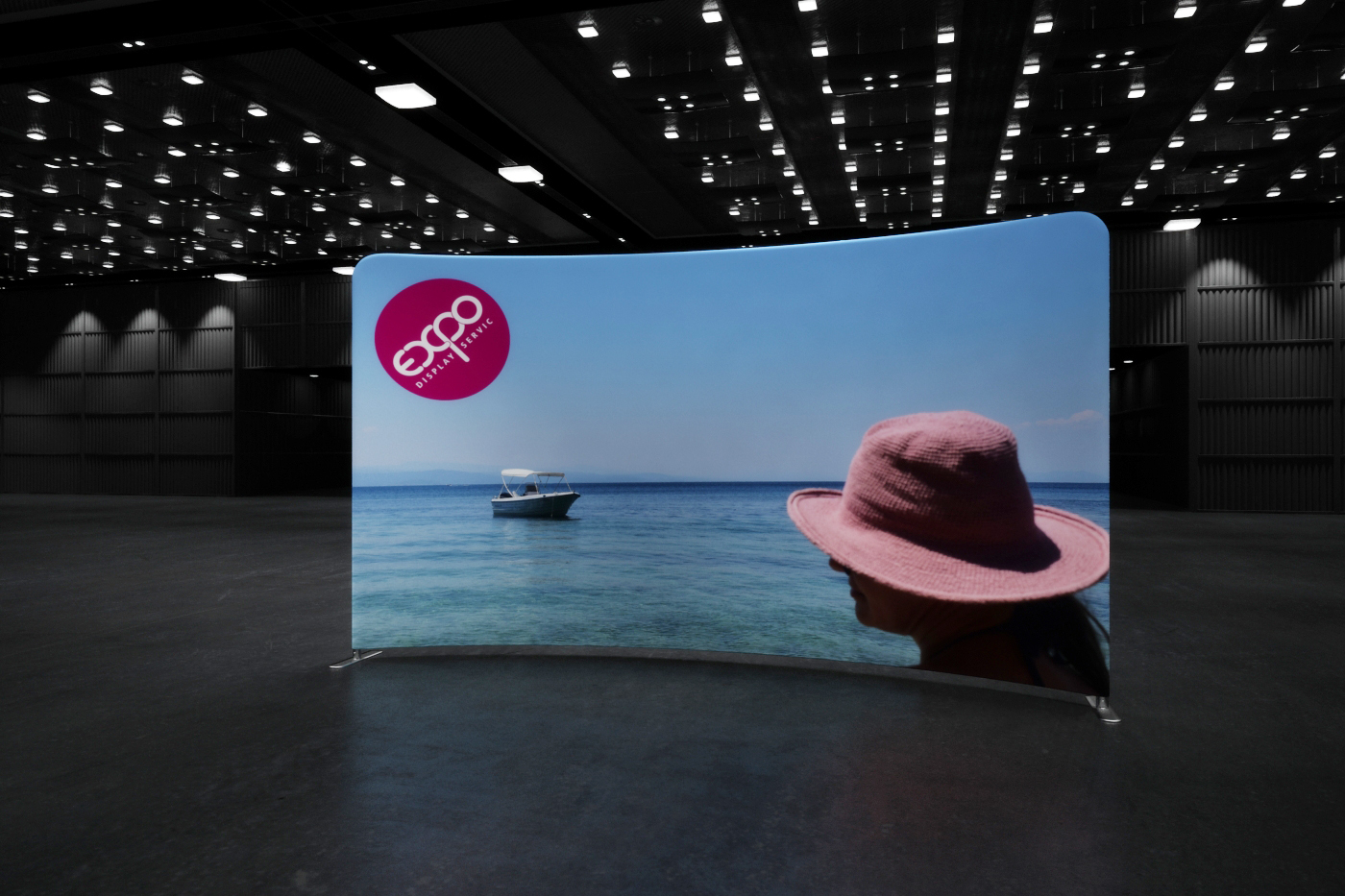 Prezentačnú stenu tvorí strečový panel navlečený na trubkovú hliníkovú konštrukciu pomocou zipsu.