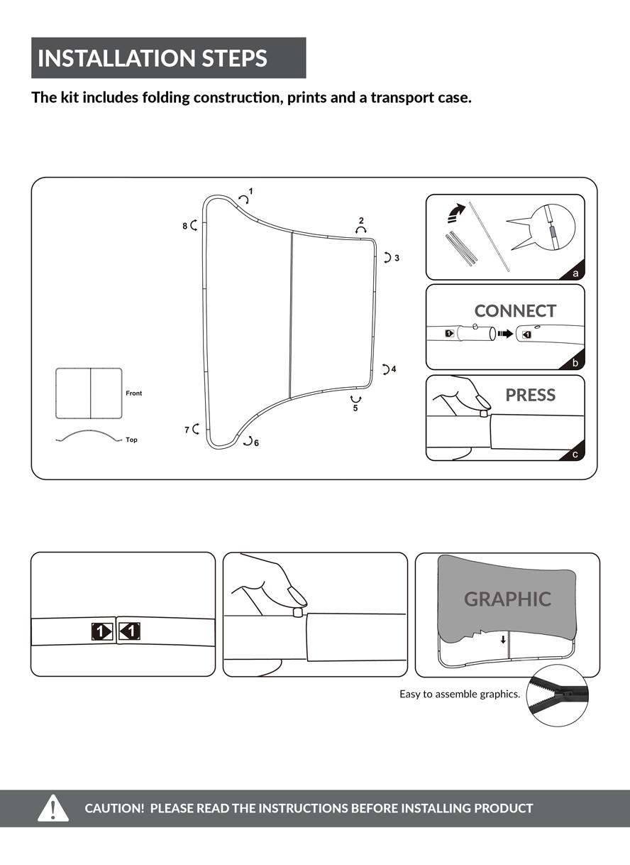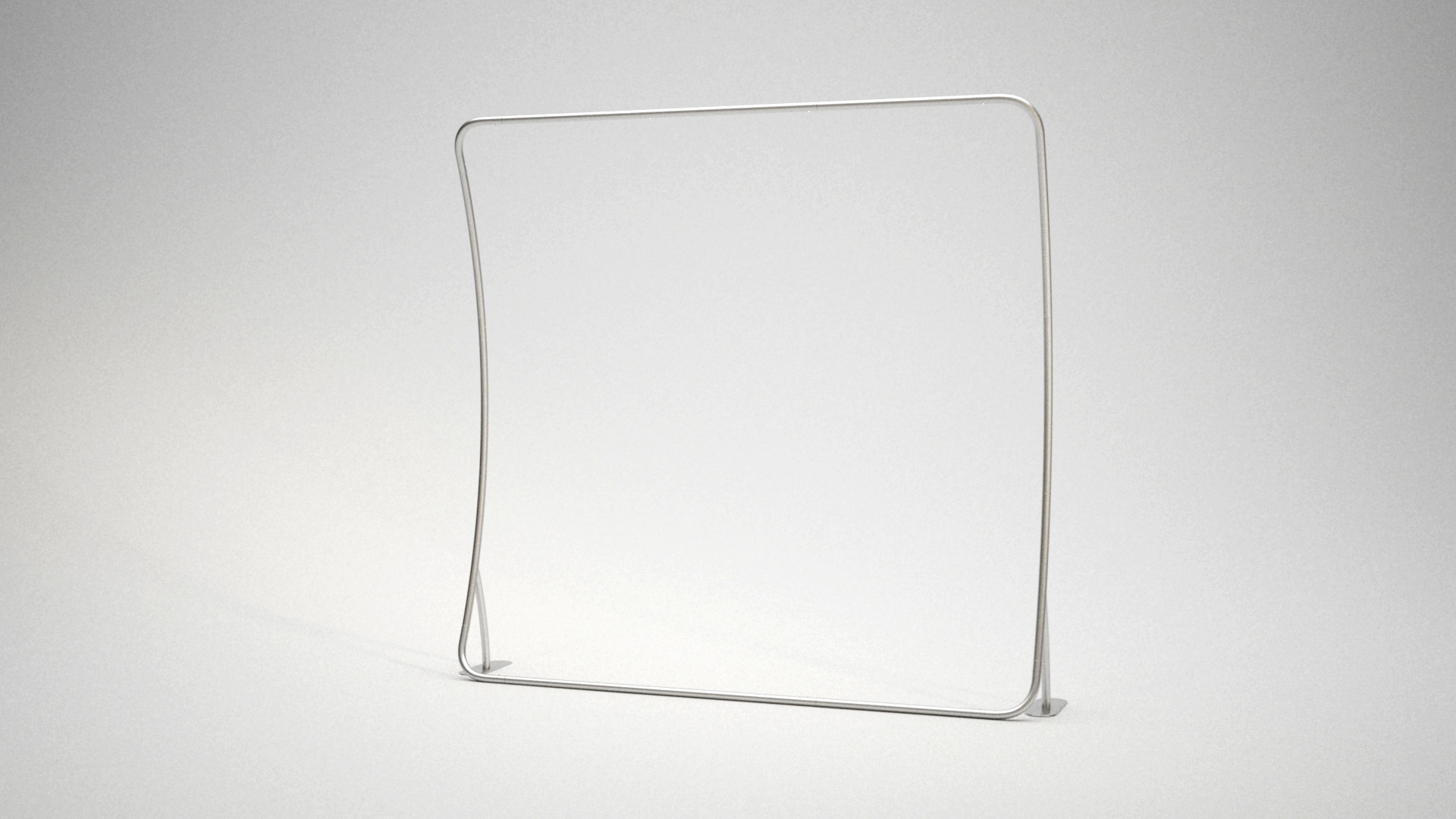 Prezentačnú stenu tvorí strečový panel navlečený na trubkovú hliníkovú konštrukciu pomocou zipsu.